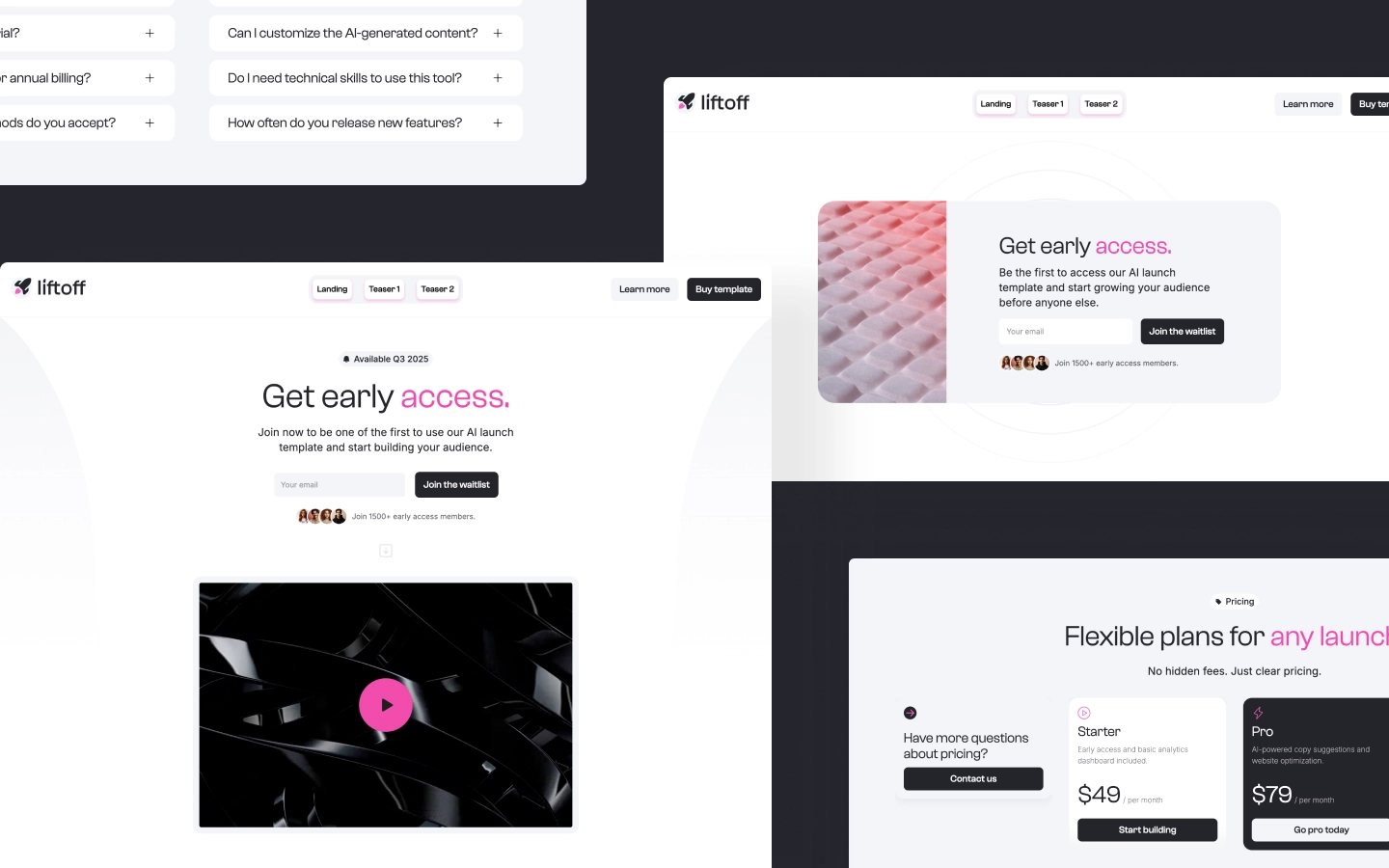 Modern AI templates (like Liftoff-style landing pages) are not about fancy design tricks.